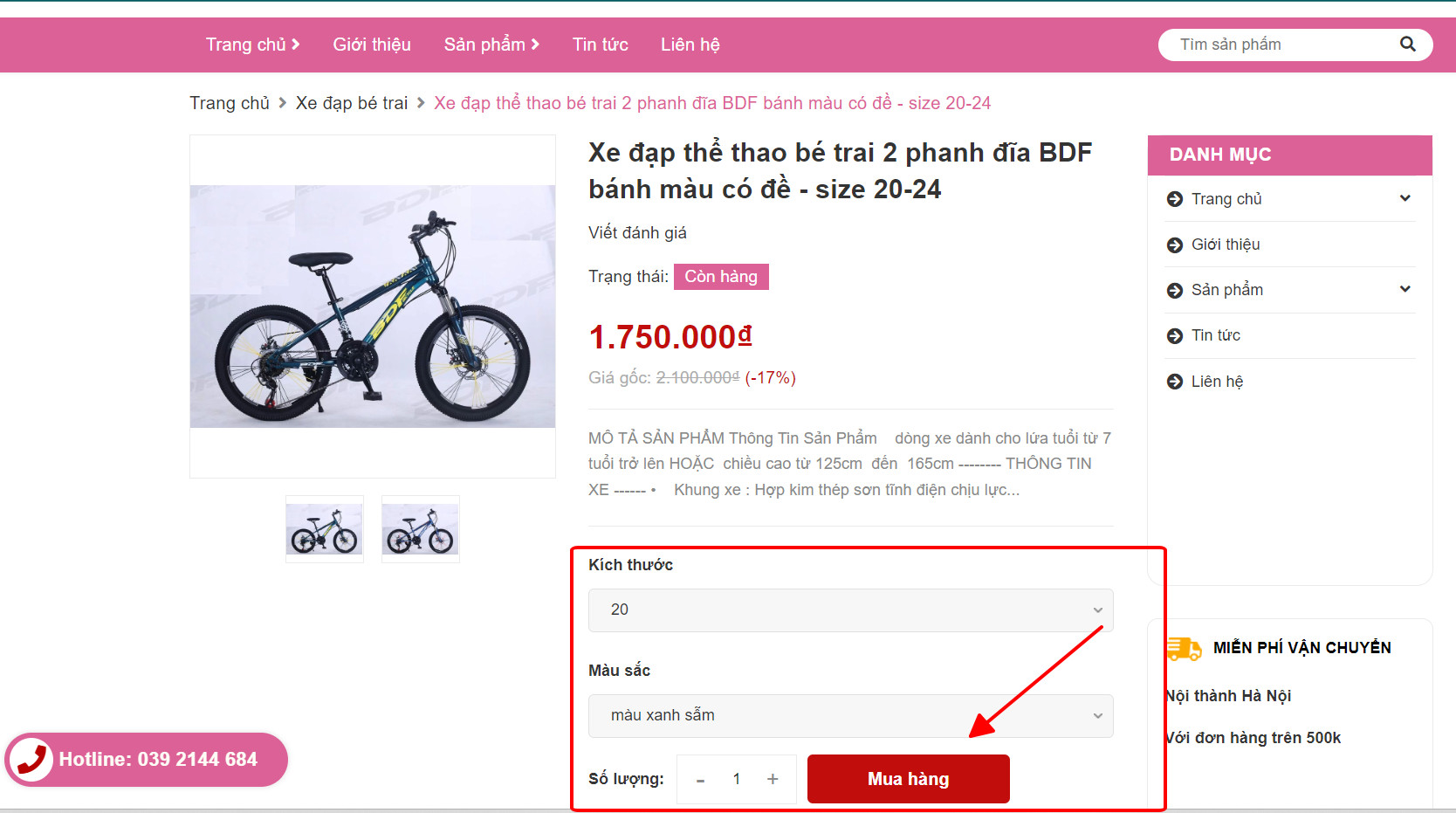 Bước 1: Truy cập website và lựa chọn sản phẩm cần mua để mua hàng