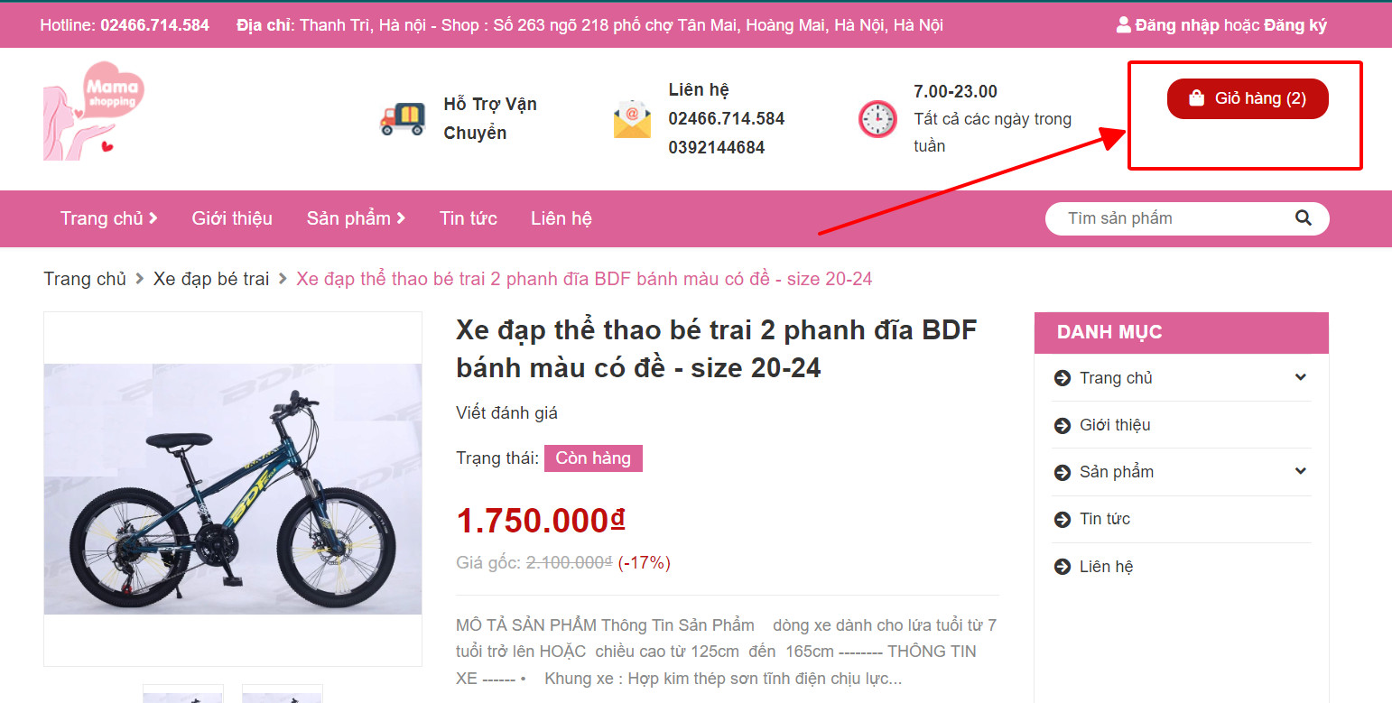 Nếu bạn muốn xem giỏ hàng để cập nhật sản phẩm: Bấm vào xem giỏ hàng