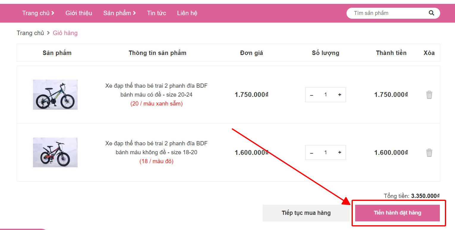 Nếu bạn muốn tiếp tục mua hàng: Bấm vào phần tiếp tục mua hàng để lựa chọn thêm sản phẩm vào giỏ hàng