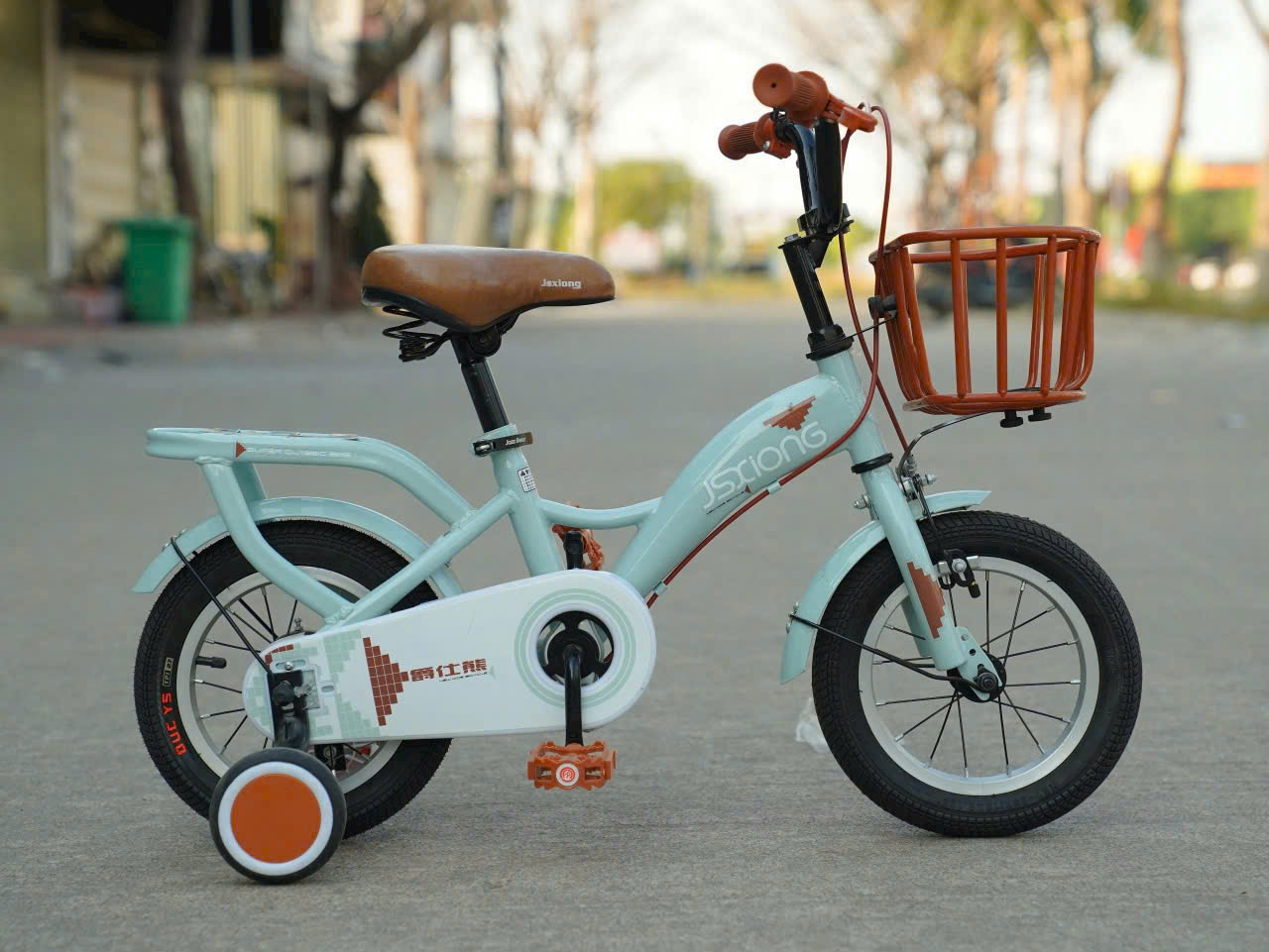 - Xe được trang bị đầy đủ phanh trước, sau đảm bảo an toàn cho bé khi di chuyển, ghi đông lắp sẵn chuông đồng cao cấp và gắn giỏ xe rất tiện dụng cho bé để búp bê hay bình nước.